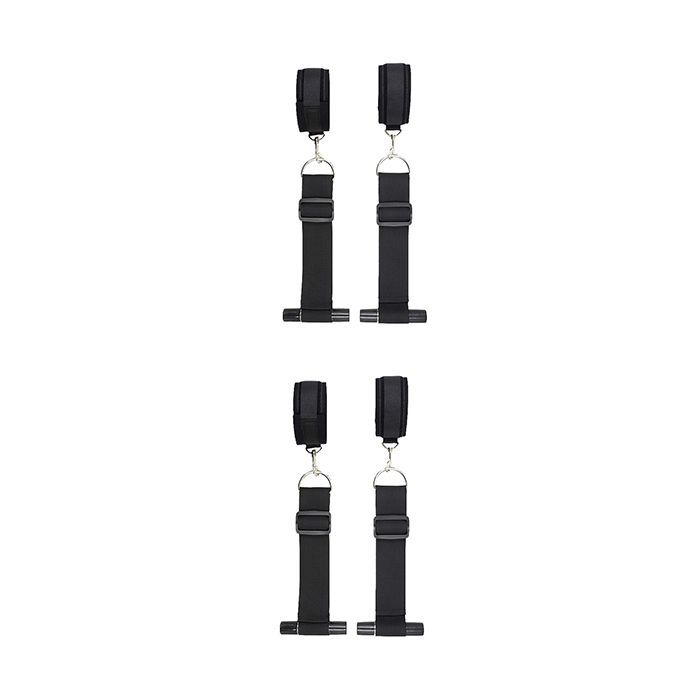 Easily attach to any door to enjoy some bondage fun. Just place the 2 acrylic tubes over the top of any open door, place the other 2 under the bottom, close (and lock for safety) the door. Bind your partner and enjoy. Comes with 4 adjustable tethers, 2 velvet wrist and 2 ankle cuffs, 4 acrylic door jam tubes and a satin eye mask.